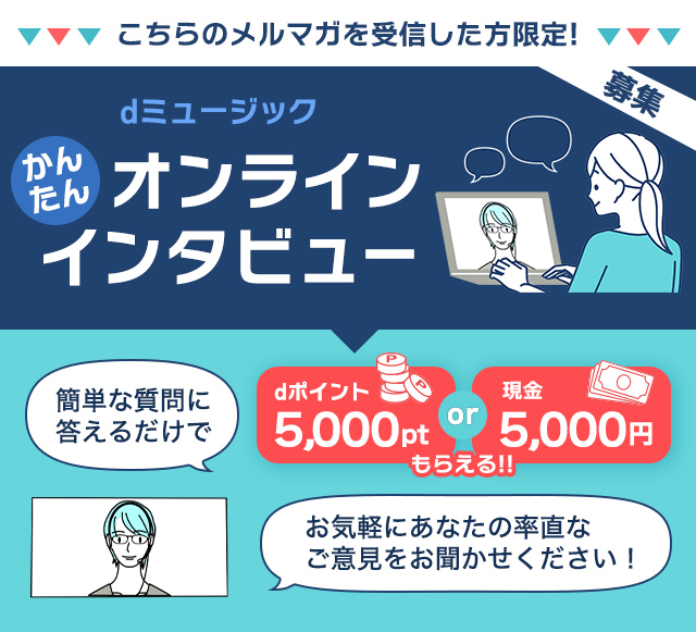 ・対象者限定メルマガを受信された方 ・「dミュージック」を利用されたことがある方 |