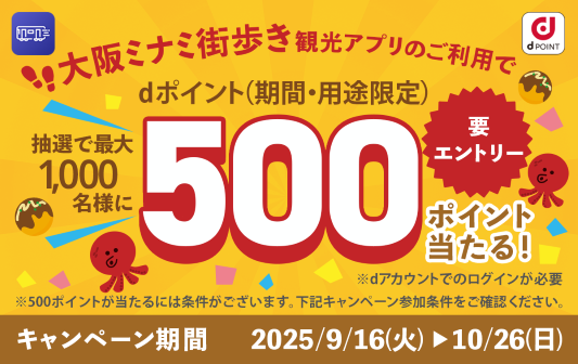 大阪ミナミ街歩き観光アプリdアカウントログインキャンペーンのご紹介!
