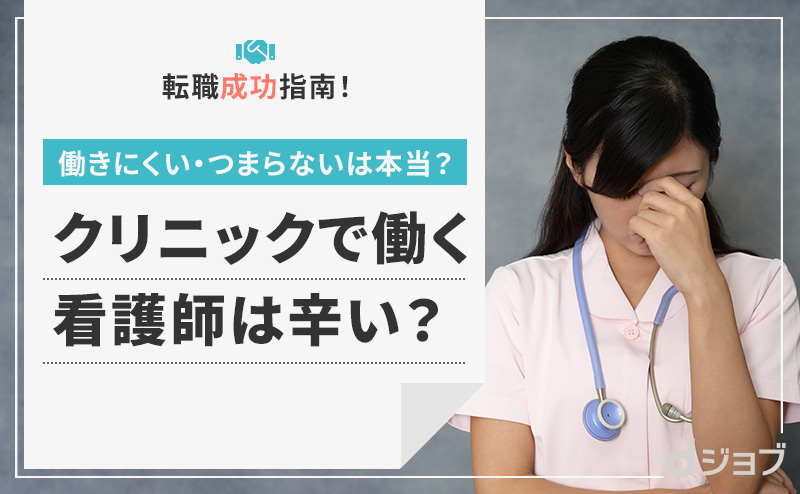 クリニックで働いていると、病棟とは違った悩みやストレスを感じて「つらい」「つまらない」と思うこともあるのではないでしょうか。
