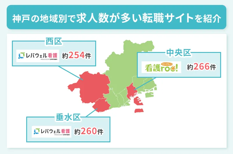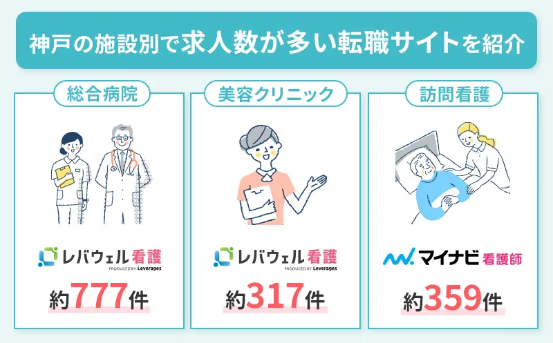 レバウェル看護は、神戸の看護師求人が約1,900件と最も多い転職サイトです。