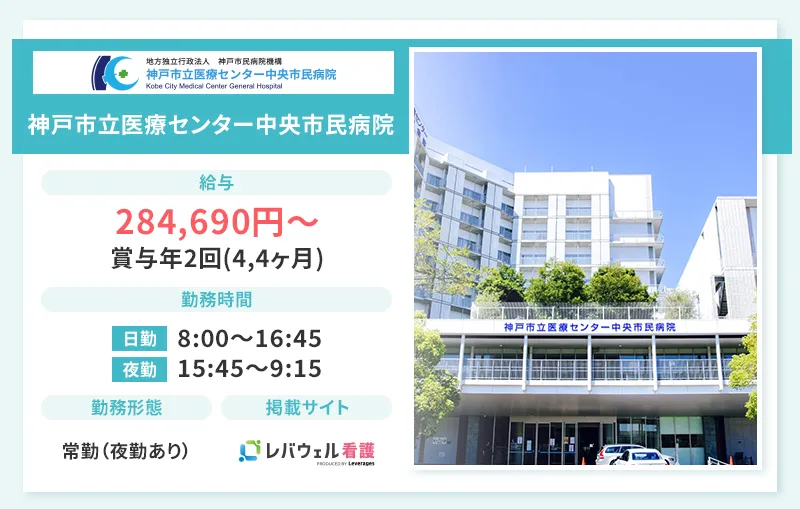 神戸市立医療センター中央市民病院は、神戸の求人の中では給与が高く看護師から人気が高い病院です。