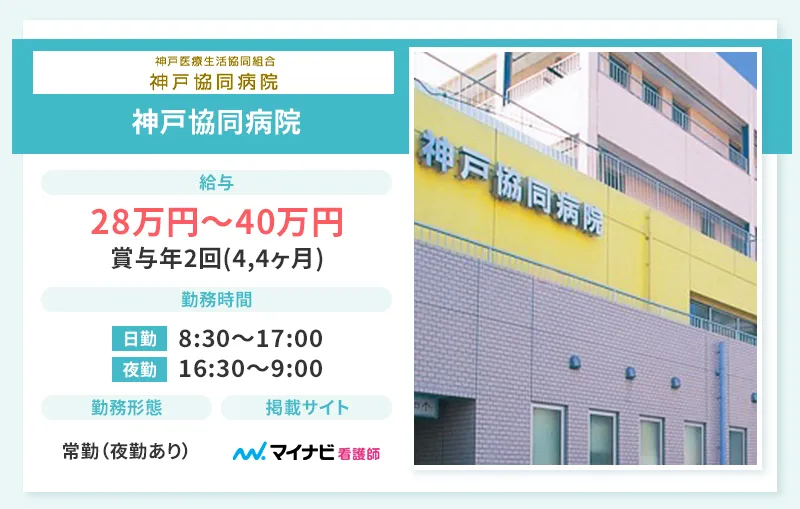 神戸協同病院は、給与面と福利厚生が働いている看護師から人気の病院です。