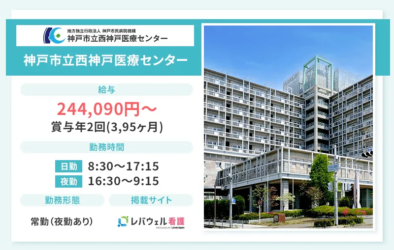 子育て中でワーフライクバランスを改善したい方や、収入アップを検討している方は、神戸市立西神戸医療センターも希望求人の候補に入れてみてください。